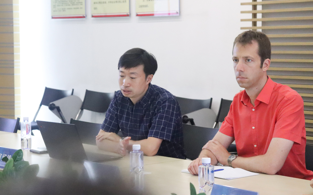 欧洲(zhou)德国ꦯVDE华(hua)东总监副总何绍锋(左一)介紹中(zhong)电容🌱式缆(lan)等全面(mian)实施VDE安(an)全认证关于需要