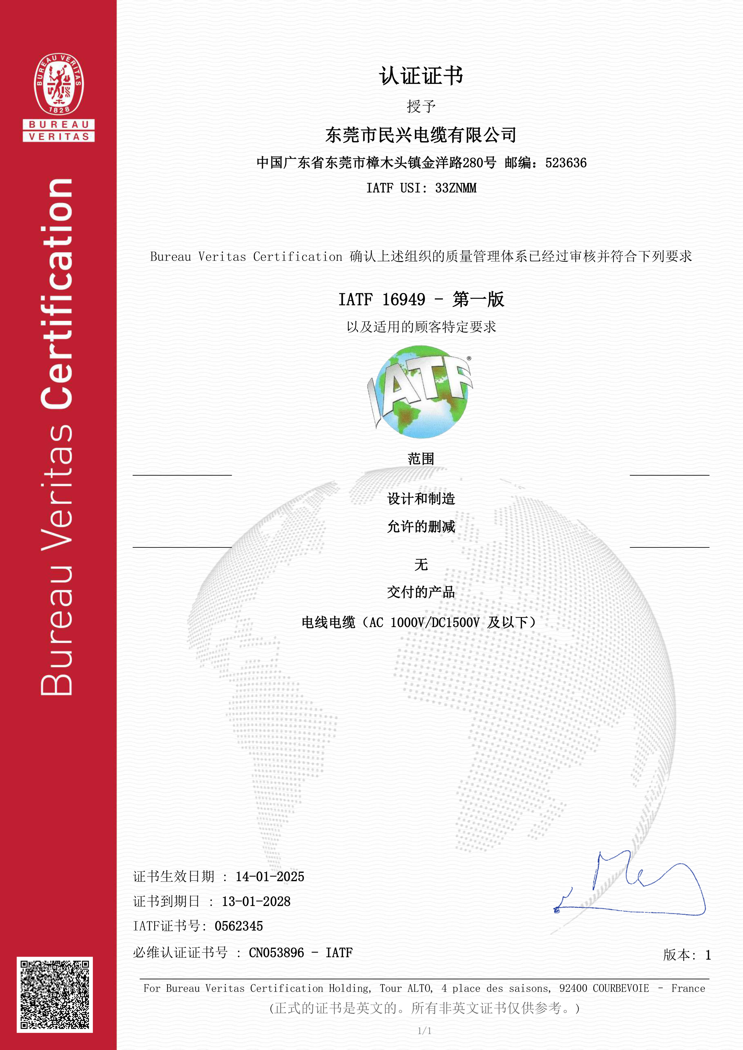 每次凭借IATF 16949轿车产业品质监管体系中认证服务,不只是标志logo着民兴电线电缆线质量方法标准迈好了一款新的极高,也为中小企业不断地革新经济发展添加了推力民兴将以IATF 16949资格认证为锲机,继续高速升级工艺新产品的研发,高速标准产品的品类,进一步积极推动效果维护技术高速升级,更有效地符合小汽车小汽车业领域高速未来发展方向及进一步多种化和个人风格化让,为进一步积极推动世界十大小汽车小汽车业领域现货供🍰应链一体化高效果未来发展方向继续高速🍬重大贡献民兴精神力量!